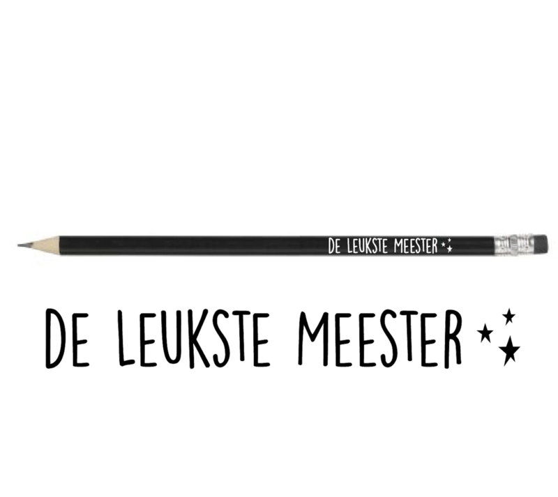 Potlood | De leukste meesterEen meester kan nooit genoeg potloden hebben. Dit potlood valt direct op door zijn dessin met de tekst ‘De leukste meester’. Ideaal als bedankje voor de juf of als geschenk voor meesterdag! De potloden zijn uitgerust met een…